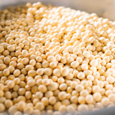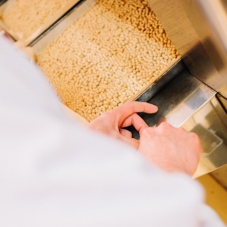 オーブンで煎った大豆を割って煎り具合を確認。ちょうどいい熱の通り具合が大切。