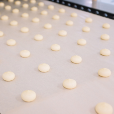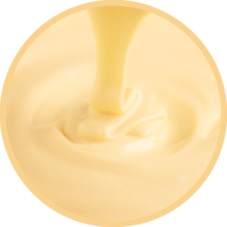 やわらかのしっとりとした食感とまろやかなコクの秘密はこのガナッシュ。ガナッシュと言いつつも、洋菓子のガナッシュとは一味違う和菓子屋の特別自家製ガナッシュです。ホワイトチョコへ温まった練乳や濃縮乳を丁寧に練り合わせました。このガナッシュが、オーブンで焼きあげるときに生地の中で溶け、内側からぐ~っと生地を押し出すことで、おまんじゅうのかたちから、愛らしいやわらかになるのです。