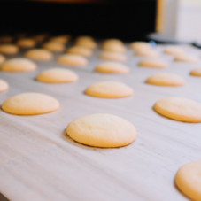 国産のバターを100%、丁寧に生地へ練りこみました。もちろん、マーガリンなどは一切使っていないので、お子さまからお年寄りまで食べられる安心のおいしさです。生地を練りこむとき、まずバターと砂糖からすりまぜることにより、まるで呼吸するかのように空気をすぅ~っと吸うことで、フワっとした食感に。そして、バターの産地は乳味・風味によって、ガナッシュや、きなことのバランスで、いちばんおいしくなるものを選り分けています。